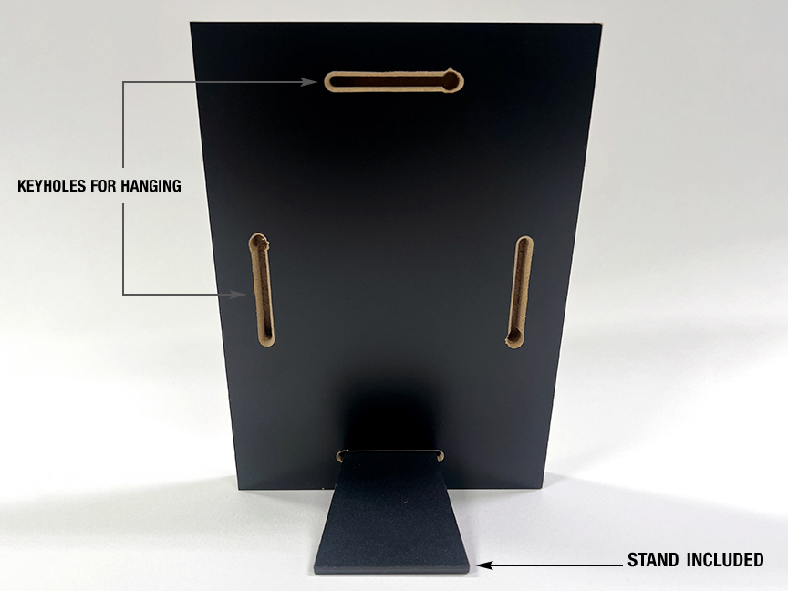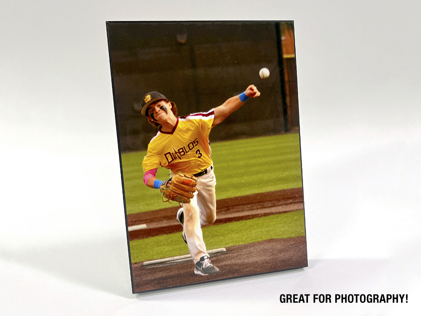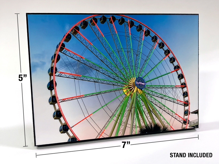 The glossy white surface allows the true colors of your image to pop with maximum brilliance. These wood prints feature a beveled black edge, giving each final piece a framed appearance. Stand is included and each piece has keyholes for hanging.